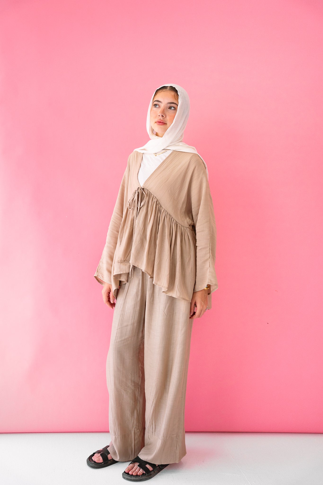 Experience effortless elegance with our Daydreamer Linen Set in White. Crafted from premium linen fabric that allows skin to breathe during warm weather, this ensemble combines practicality with sophisticated style. The lightweight construction ensures comfort throughout the day, while the crisp beige hue offers versatile styling options for the discerning wearer seeking both functionality and refined aesthetics in summer attire.