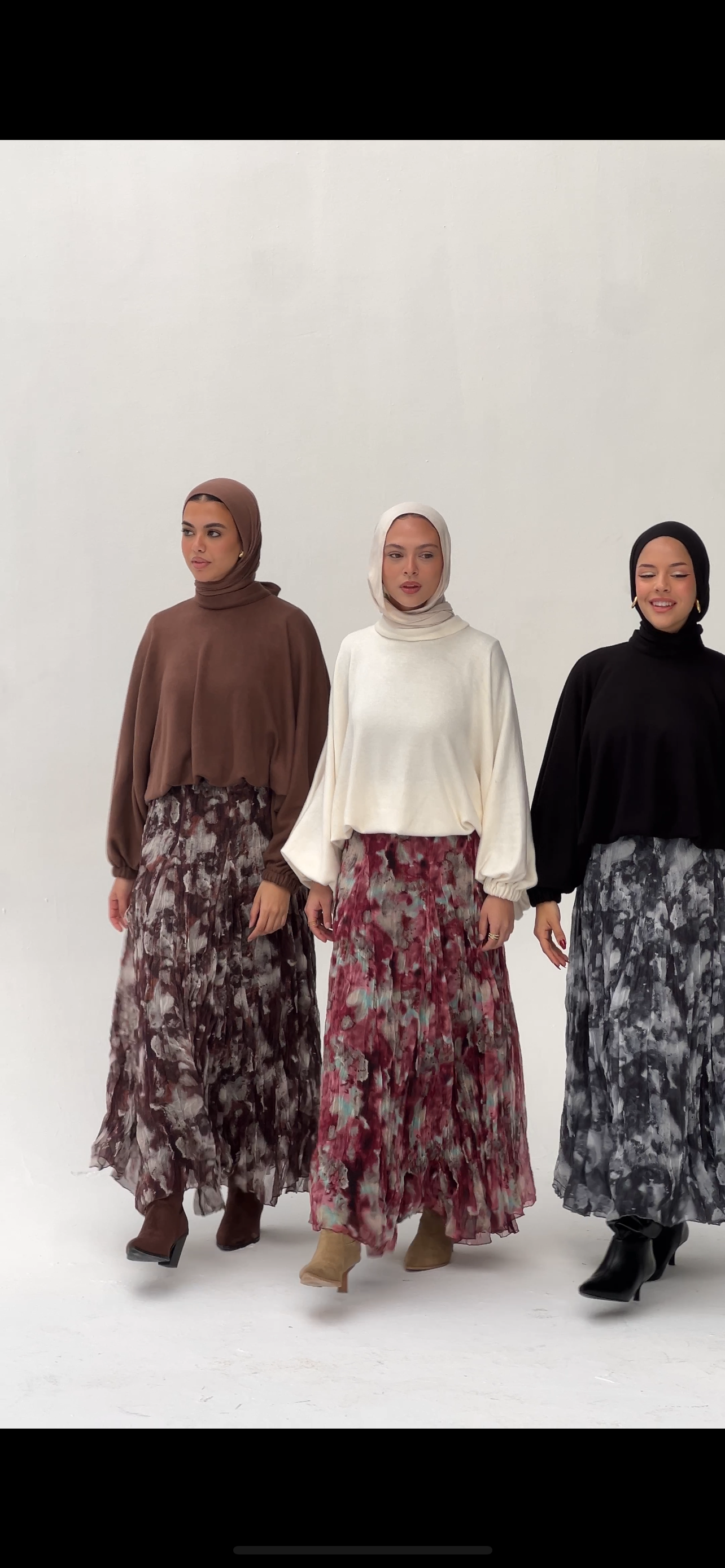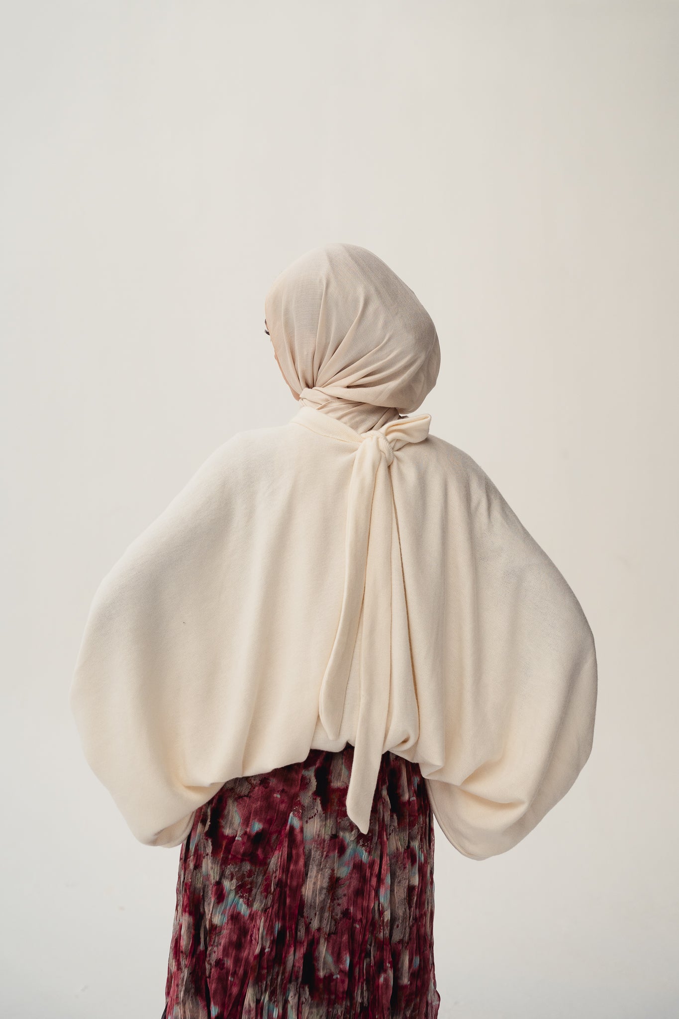 Crafted from warm, soft wool, this top offers a relaxed fit and dramatic oversized sleeves with cinched cuffs for a flattering silhouette. The back tie detail adds a unique, feminine flair, making it versatile enough to wear with both casual and dressier outfits
