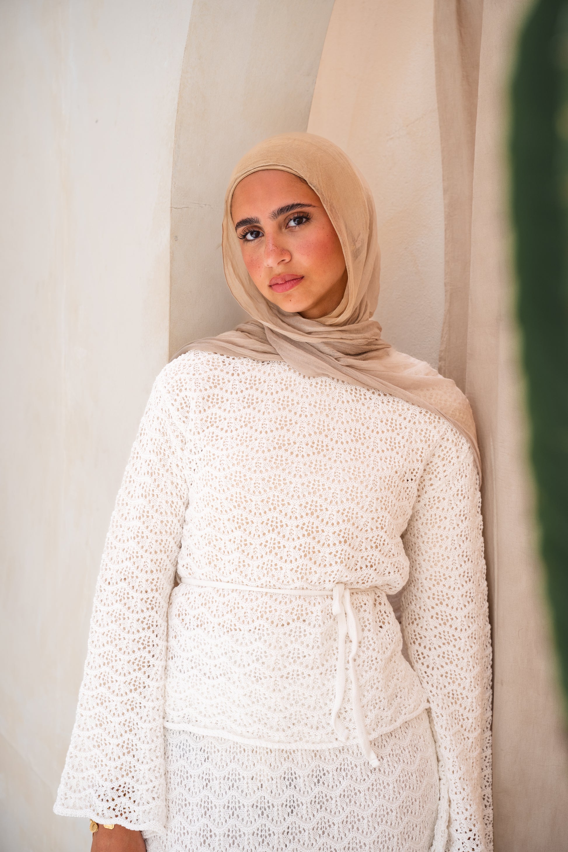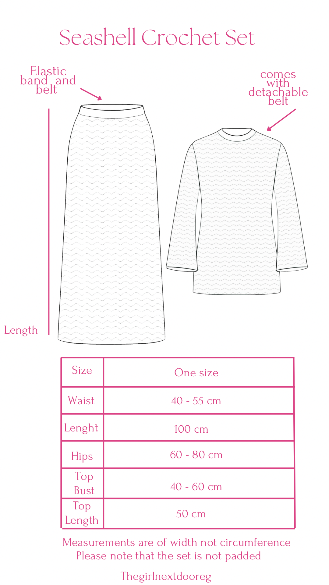 Wrap yourself in the delicate texture of our "Seashells" crochet set. It feels incredibly soft and light- perfect for those warm summer days when comfort is key. It holds the sounds and stories of the ocean forever!