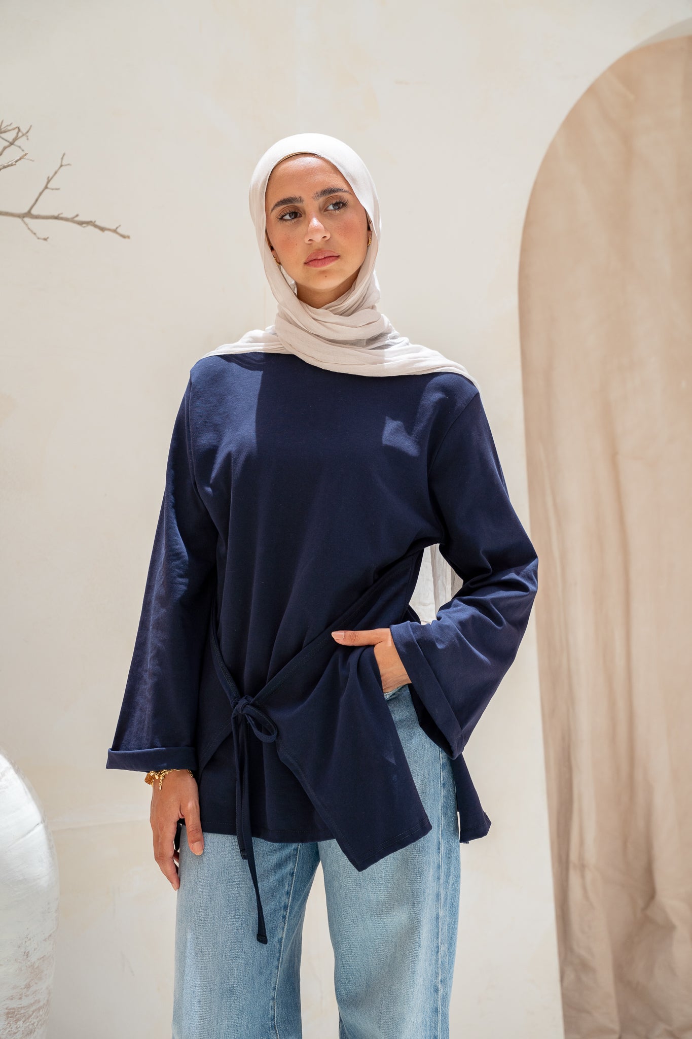 Designed for softness and simplicity, this girly long-sleeved top brings a breezy elegance to your everyday look. The lightweight fabric flows gently, giving it that summery, easygoing feel—perfect for layering or wearing on its own from day to night.