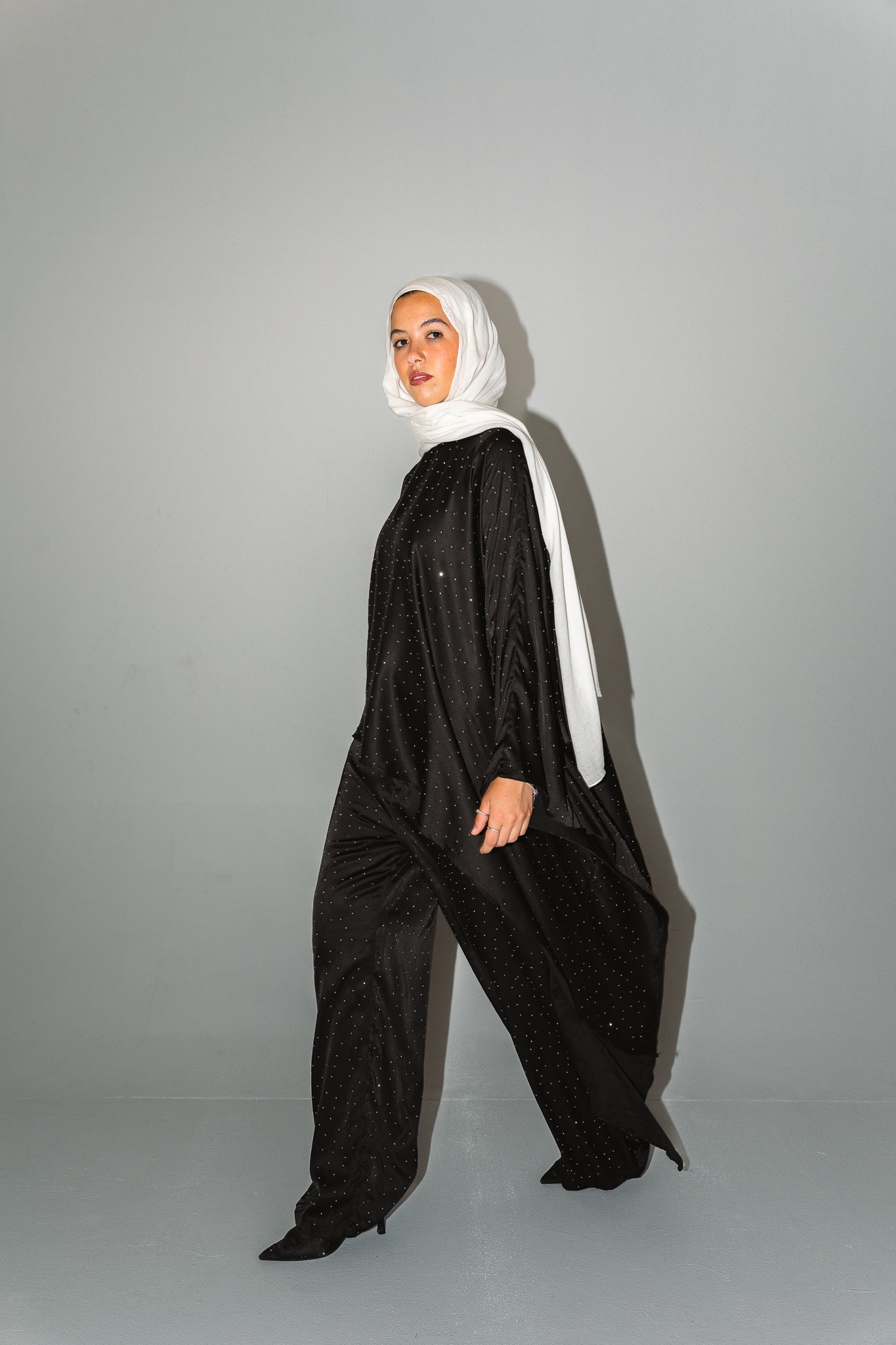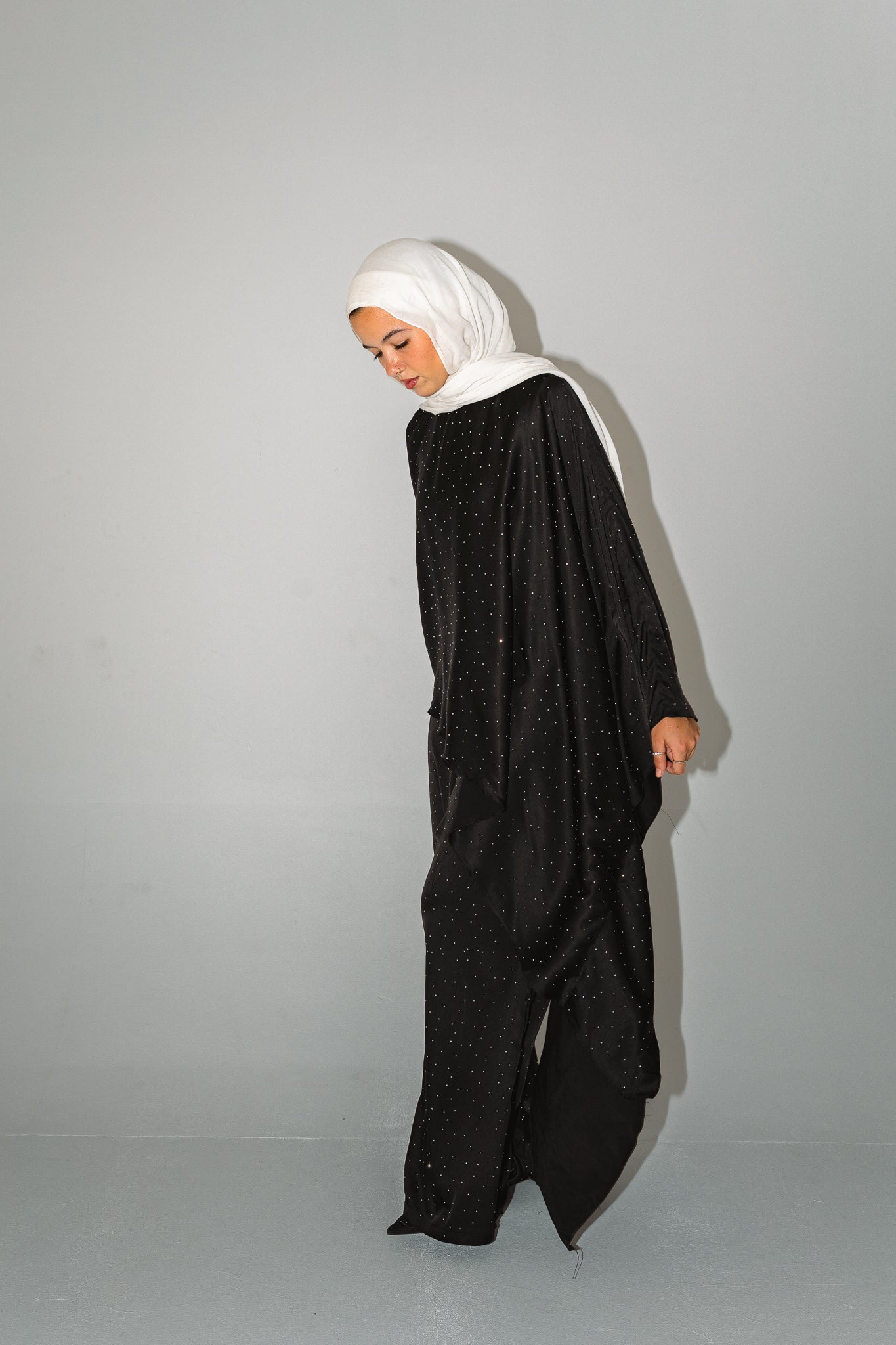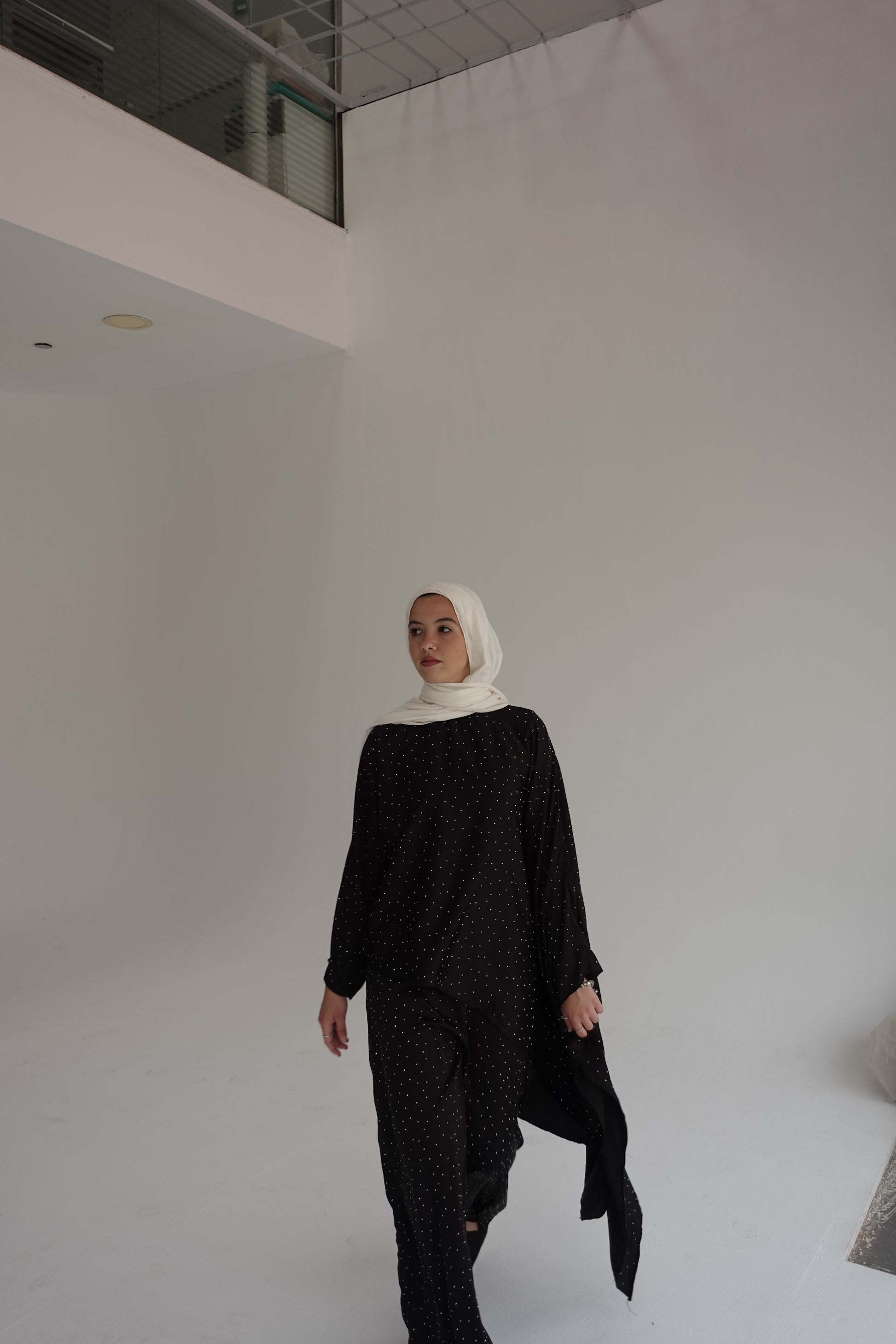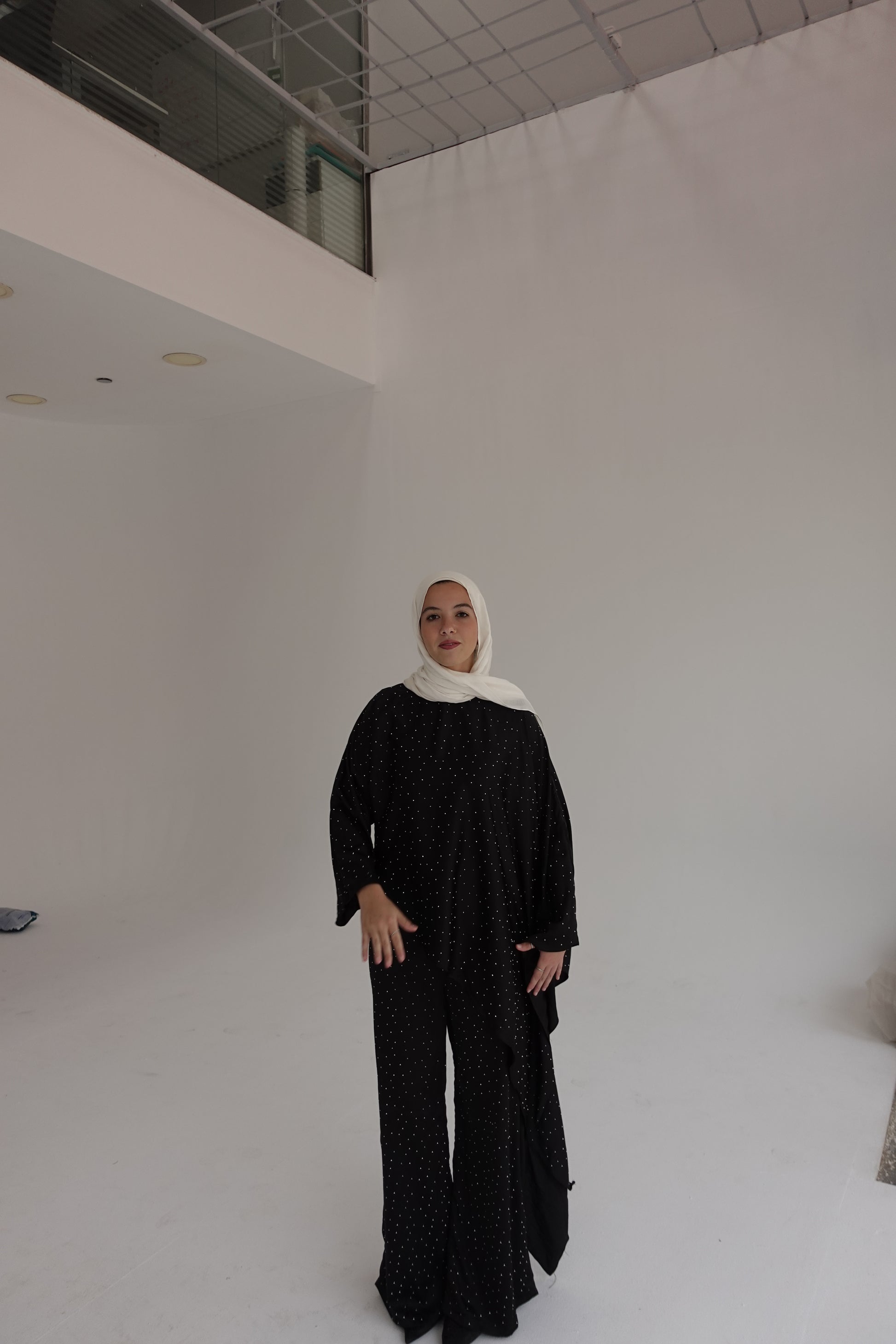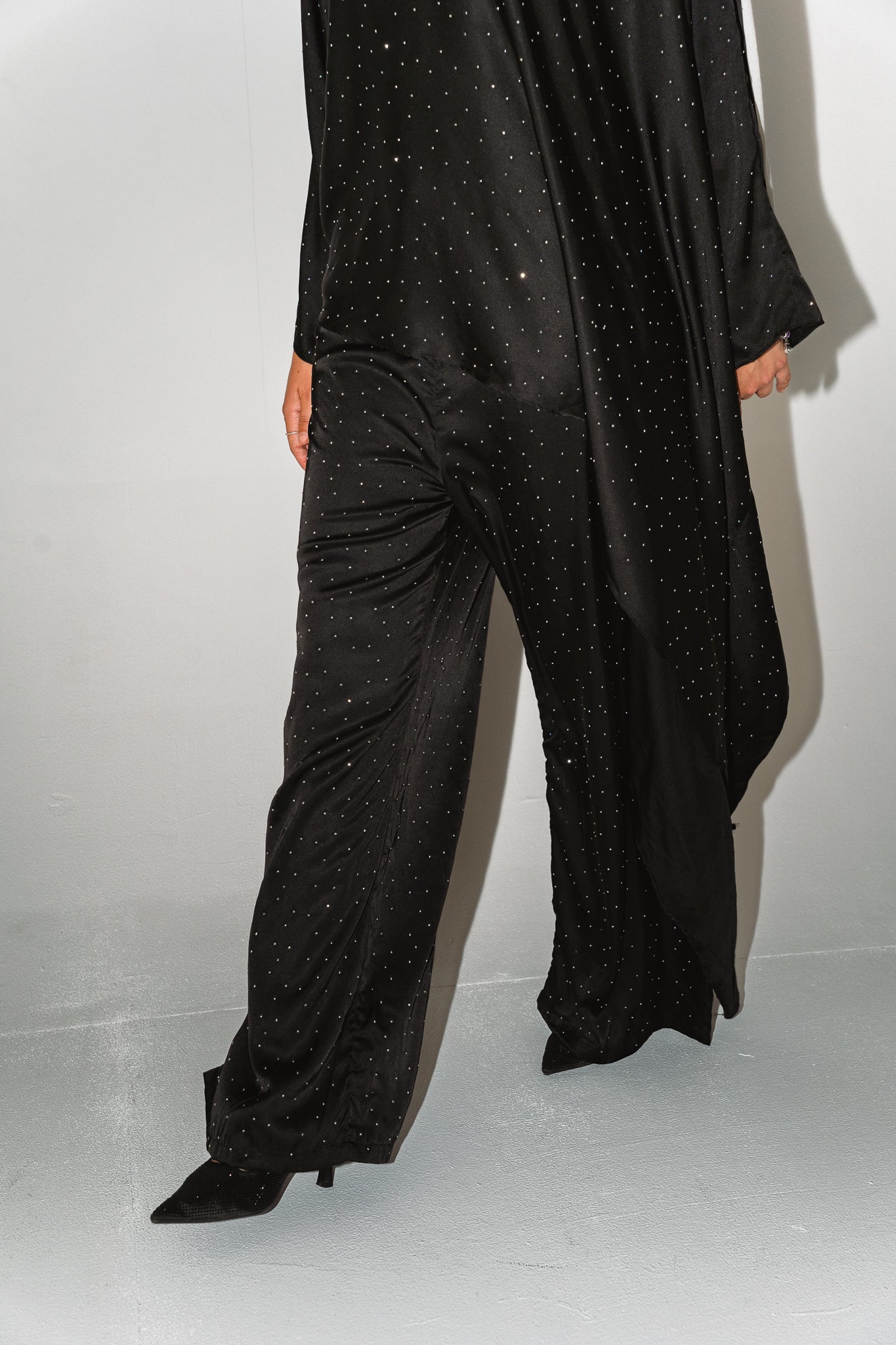 Unleash your inner star with our stunning black satin bedazzled set. Luxuriously soft and exquisitely detailed, this set shimmers with every move, ensuring all eyes are on you! Perfect for a glamorous night out or a sophisticated evening in, it's designed to make you feel as radiant as you look!