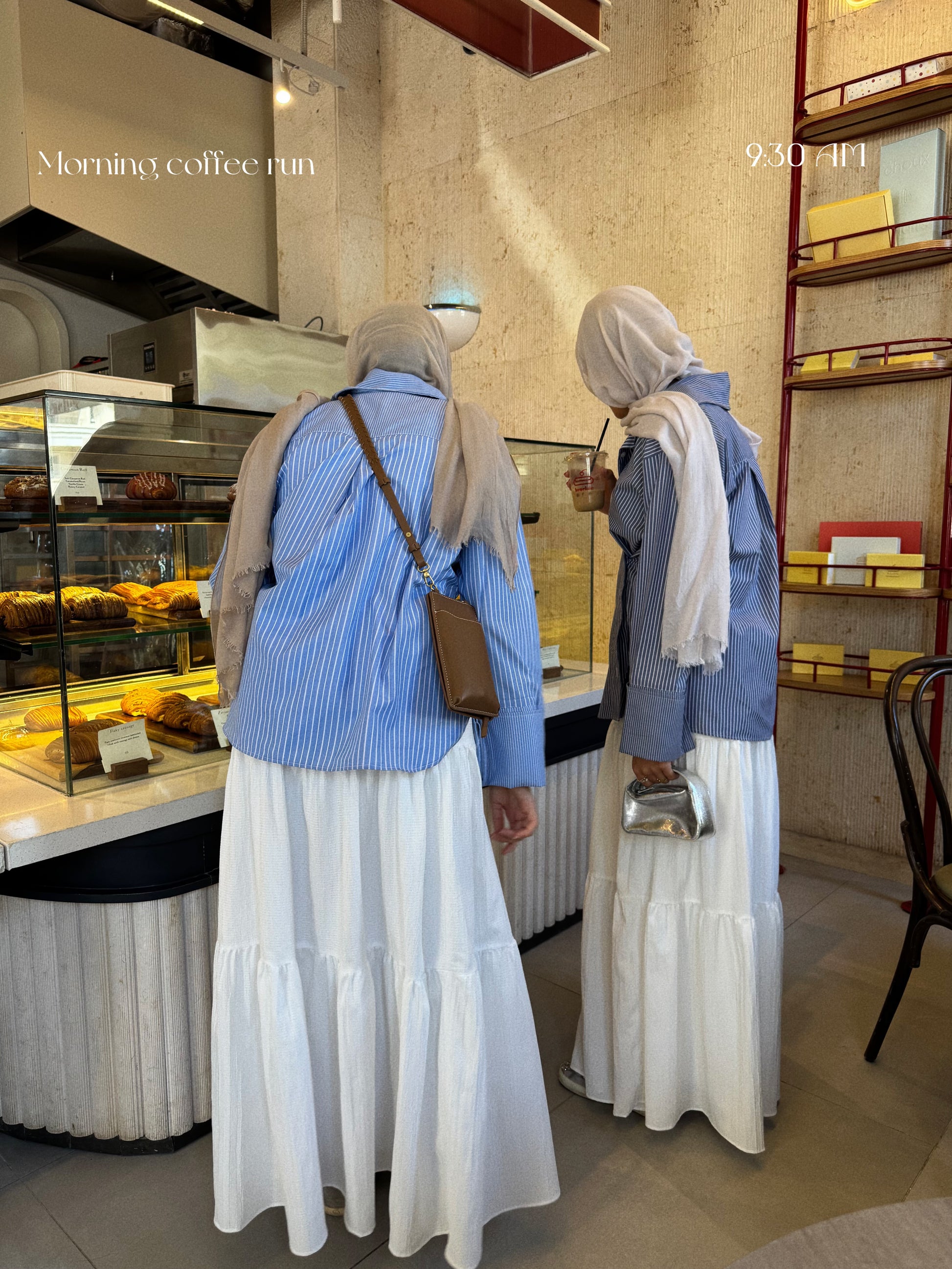 Crafted from lightweight cotton blend fabric, it pairs beautifully with both skirts and trousers for a modest yet modern look. A versatile staple for day-to-evening wear.